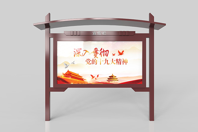 宣傳欄是一種VI應(yīng)用,是組織或企業(yè)單位等進(jìn)行自我宣傳的有效手段,常被應(yīng)用于街道,工廠等公共場所;一般采用不銹鋼為框架,鋼化玻璃或者耐力板為面板,鋁合金為頂棚,面板可以打開更換宣傳畫面。現(xiàn)如今,宣傳欄廣泛應(yīng)用于學(xué)校、小區(qū)、會議館、展廳等各個(gè)場地。